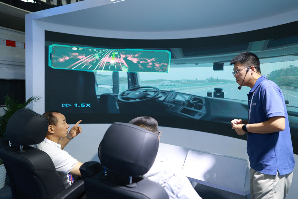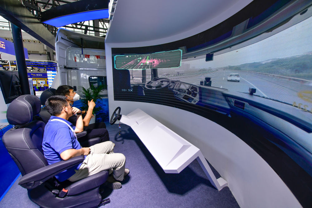 8月28日,觀展者在2024中國國際大數(shù)據(jù)產(chǎn)業(yè)博覽會現(xiàn)場參觀智能自動駕駛系統(tǒng)。