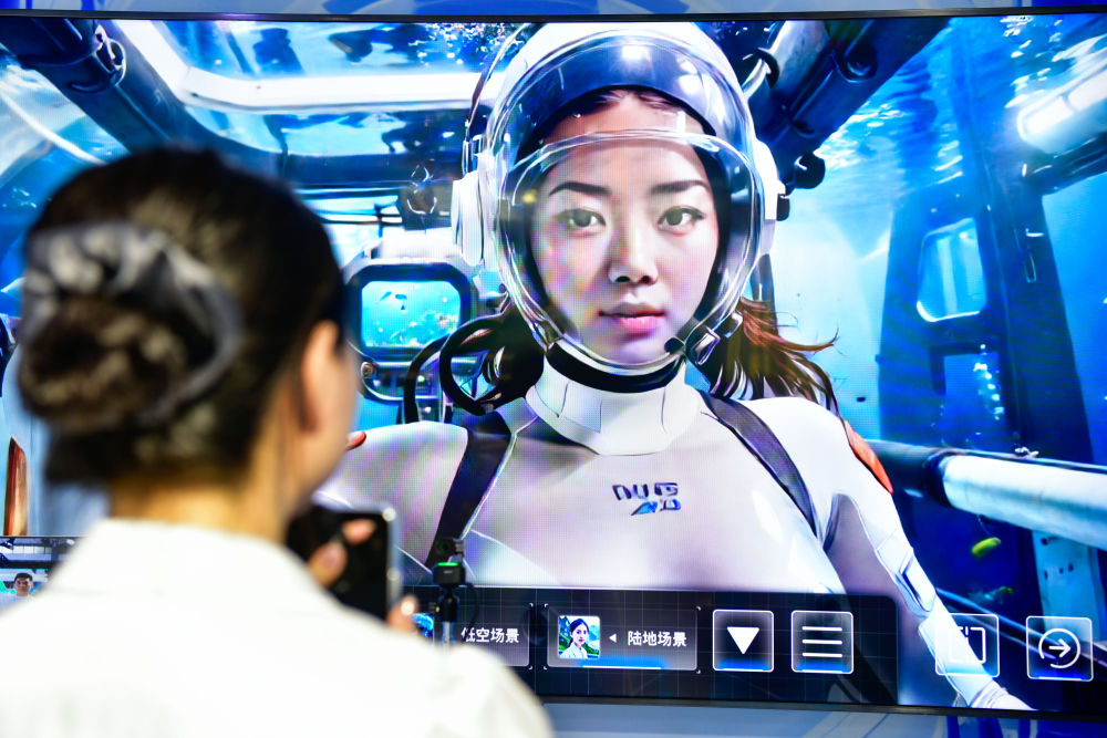 8月28日,參會人員在數(shù)博會上體驗(yàn)AI+元宇宙空間。