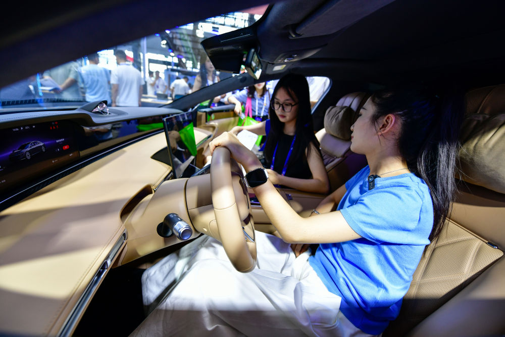 8月28日,觀展者在2024中國國際大數(shù)據(jù)產(chǎn)業(yè)博覽會現(xiàn)場參觀智能汽車。