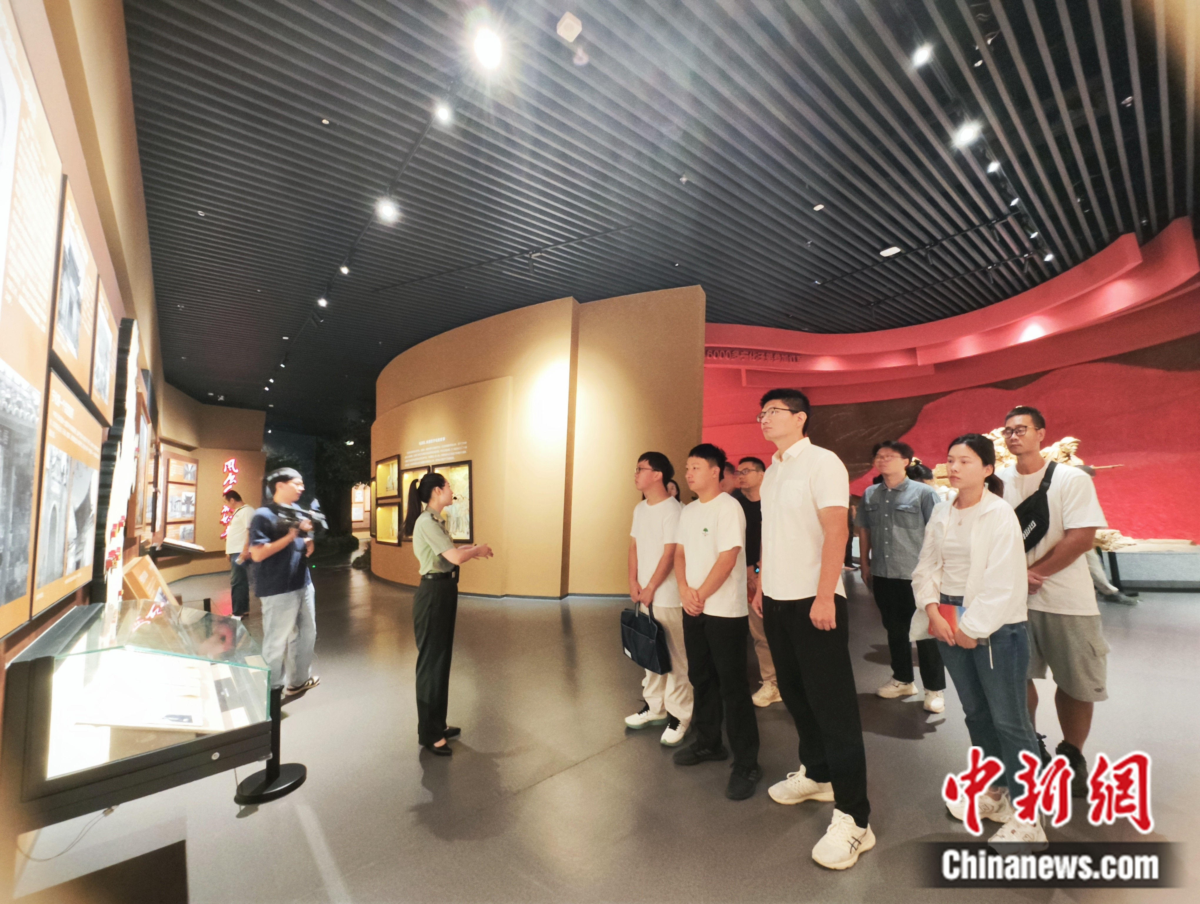 寧化縣長征精神教育基地內(nèi),講解員向采訪調研團講述歷史。劉越 攝