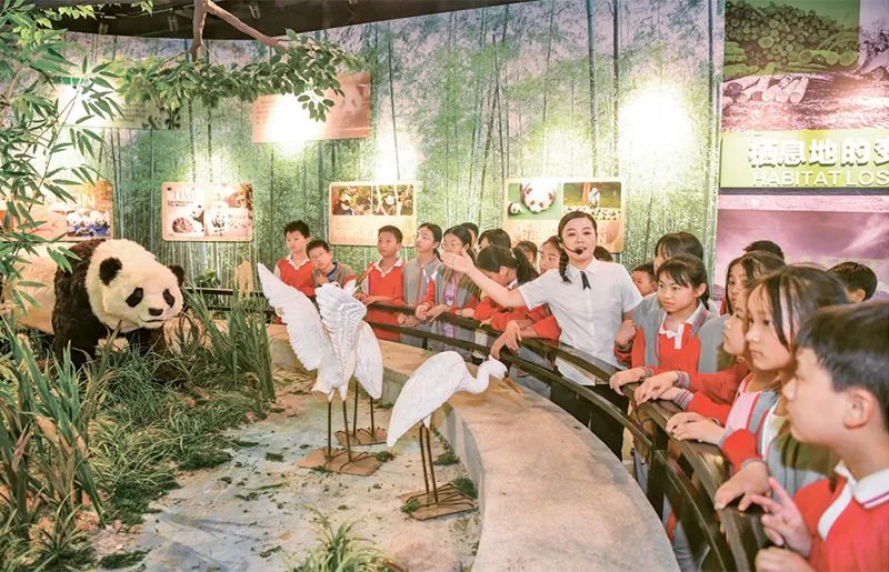 新時(shí)代以來,教育系統(tǒng)著力推動(dòng)思想政治教育、專業(yè)教育與創(chuàng)新教育、社會(huì)實(shí)踐、志愿服務(wù)等的融合。圖為2024年5月17日,學(xué)生們?cè)诮饕素S熊貓科技館開展“行走的思政課”主題科普教育活動(dòng),增強(qiáng)節(jié)約資源和保護(hù)自然環(huán)境意識(shí)。 人民圖片 周亮/攝