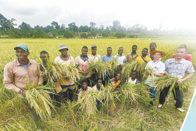 位于科特迪瓦迪沃省的格格杜墾區(qū)于1997年迎來(lái)第一批中國(guó)農(nóng)業(yè)技術(shù)合作組專家,經(jīng)過近30年的努力,墾區(qū)已成為中科兩國(guó)農(nóng)業(yè)合作示范基地和科特迪瓦全國(guó)聞名的水稻種植基地。圖為中國(guó)農(nóng)業(yè)專家與當(dāng)?shù)剞r(nóng)民在水稻田中慶祝豐收。
