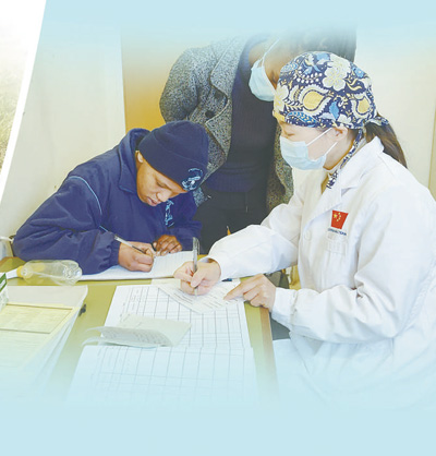 自1997年以來(lái),中國(guó)湖北省承擔(dān)向萊索托王國(guó)派遣醫(yī)療隊(duì)的任務(wù),醫(yī)療隊(duì)隊(duì)員在當(dāng)?shù)卦\治了大量常見病、多發(fā)病,治愈了眾多疑難病癥,深受萊索托民眾歡迎與尊敬。圖為第十八批中國(guó)援萊索托醫(yī)療隊(duì)醫(yī)生王琦正在接診患者。