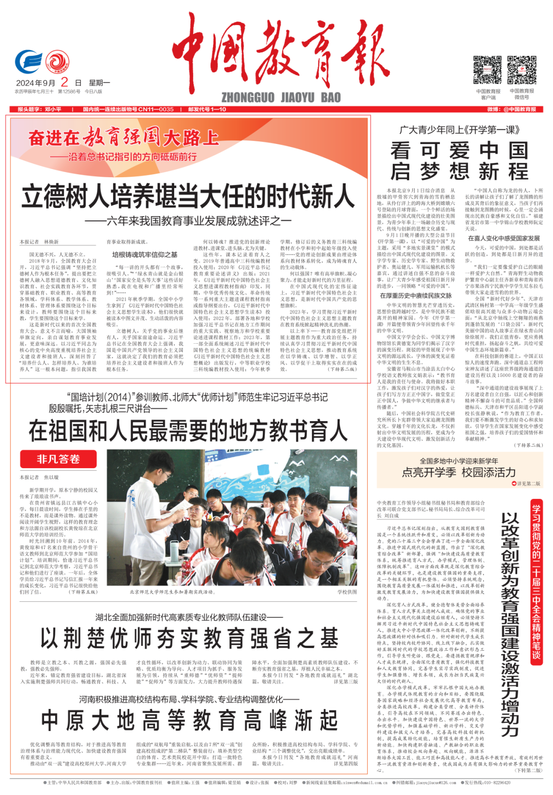 今天,“奮進(jìn)在教育強(qiáng)國(guó)大路上——沿著總書(shū)記指引的方向砥礪前行”專欄之“六年來(lái)我國(guó)教育事業(yè)發(fā)展成就述評(píng)”系列推出第一篇《立德樹(shù)人培養(yǎng)堪當(dāng)大任的時(shí)代新人》,一起來(lái)看——
