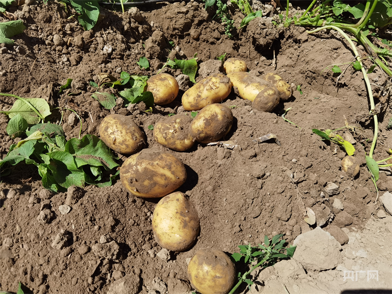 管護(hù)人員一鏟子下去,幾顆表皮光滑的馬鈴薯便破土而出(央廣網(wǎng)記者 夏莎 攝)