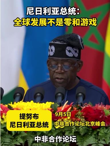 尼日利亞總統提努布5日在中非合作論壇北京峰會開幕式上說,中非合作論壇以及更廣泛的中非伙伴關系所取得的成功,表明一個重要真理:全球發(fā)展不是零和游戲。