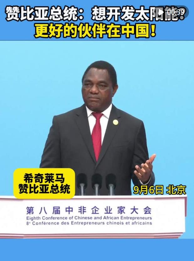 贊比亞總統(tǒng)希奇萊馬6日在第八屆中非企業(yè)家大會(huì)開幕式上稱贊中國(guó)技術(shù),呼吁非中企業(yè)加強(qiáng)技術(shù)合作。誰(shuí)是更好的能源領(lǐng)域合作伙伴?誰(shuí)能提供最好的太陽(yáng)能發(fā)電技術(shù)?他告訴非洲企業(yè)家:“那就是你們的中國(guó)同行!”
