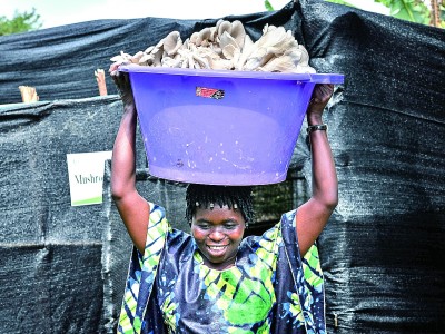 盧旺達(dá)南方省胡耶區(qū),采用中國(guó)菌草技術(shù)栽培的鮮菇喜獲豐收。新華社發(fā)