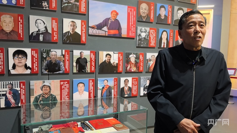 9月4日,淅淅瀝瀝的雨下個(gè)不停。下午三時(shí)許,孫保衛(wèi)來(lái)到四子王旗博物館展廳,在“人民楷?!倍假F瑪展區(qū)駐足良久。他是都貴瑪額吉養(yǎng)育的28個(gè)“國(guó)家的孩子”中年齡最小的一個(gè)。