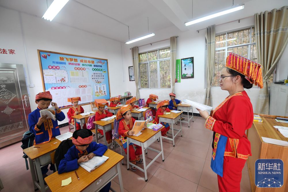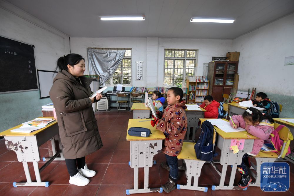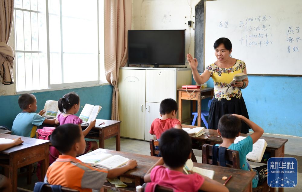 在廣西灌陽縣洞井瑤族鄉(xiāng)野豬殿小學(xué),“95后”老師趙艷在給學(xué)生上課(2024年3月27日攝)。