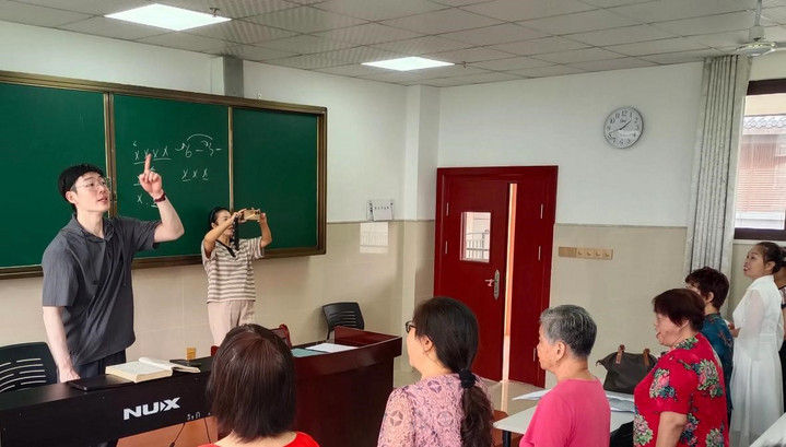 成都市老年大學教務(wù)教研部部長王小琴說,2024年秋季學期學校外聘老師210余名,40歲以下中青年教師約占60%,其中“90后”教師就有50余人。為讓年輕教師上好課,學校每學期會對新教師進行集中培訓,幫助他們更快適應(yīng)老年大學的教學特點。