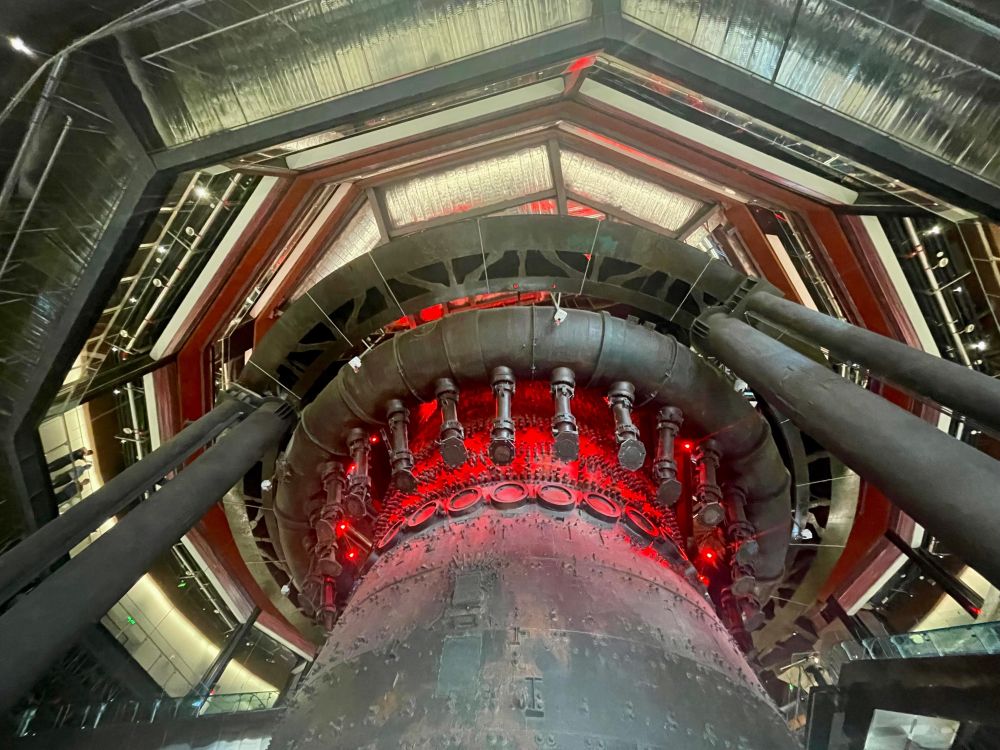 更絕妙的是,四高爐巨大的爐芯得以保留。伴著紅色燈光照映,爐火仿佛再次升騰而起。年輕人感覺到“賽博朋克”,年長(zhǎng)者聯(lián)想到“鐵色記憶”,專業(yè)人士看到了“城市更新”。這是高爐生命的最好延續(xù)。