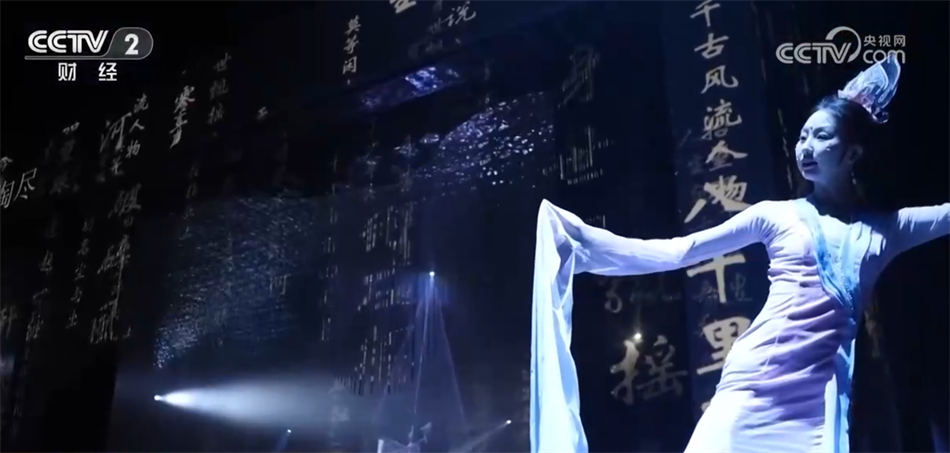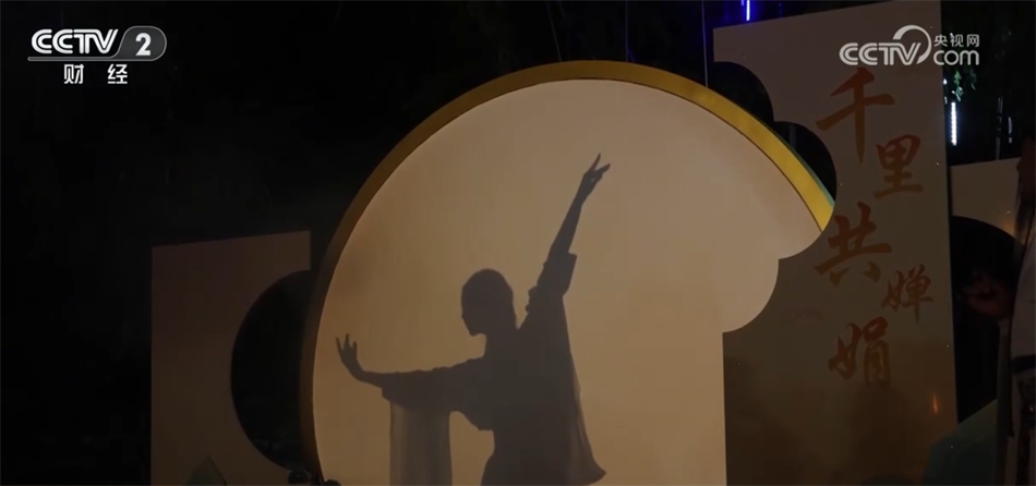 夜幕降臨,全新的《千里共嬋娟》月影舞將月色之美與文化氣息融為一體,劇目特別制作了新的月亮造型背景,“穿越”而來(lái)的蘇軾吟詩(shī),舞者在幕布后表演舞蹈,通過(guò)光影將古詩(shī)詞中的意境呈現(xiàn)在大家眼前,為游客帶來(lái)耳目一新的視聽(tīng)感受。