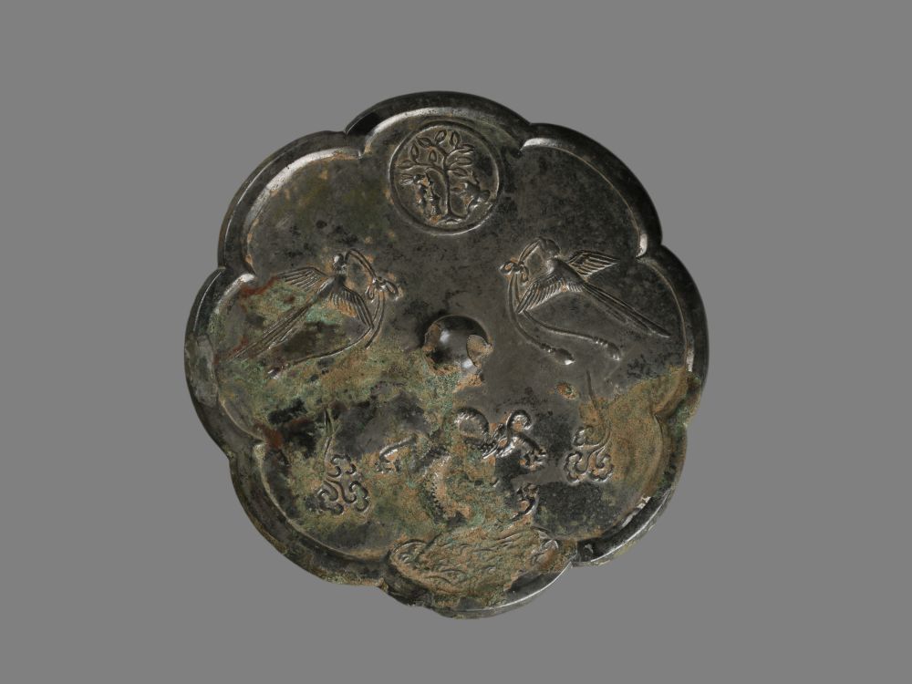 這枚雙鸞月宮紋葵花形鏡為國家二級(jí)文物,直徑15.3厘米,重0.54千克,1983年出土于陜西省東南部地區(qū)。陜西歷史博物館社會(huì)教育部主任、研究館員呼嘯說:“這枚銅鏡不過手掌大小,其畫面卻紋飾細(xì)膩、層次豐富。”