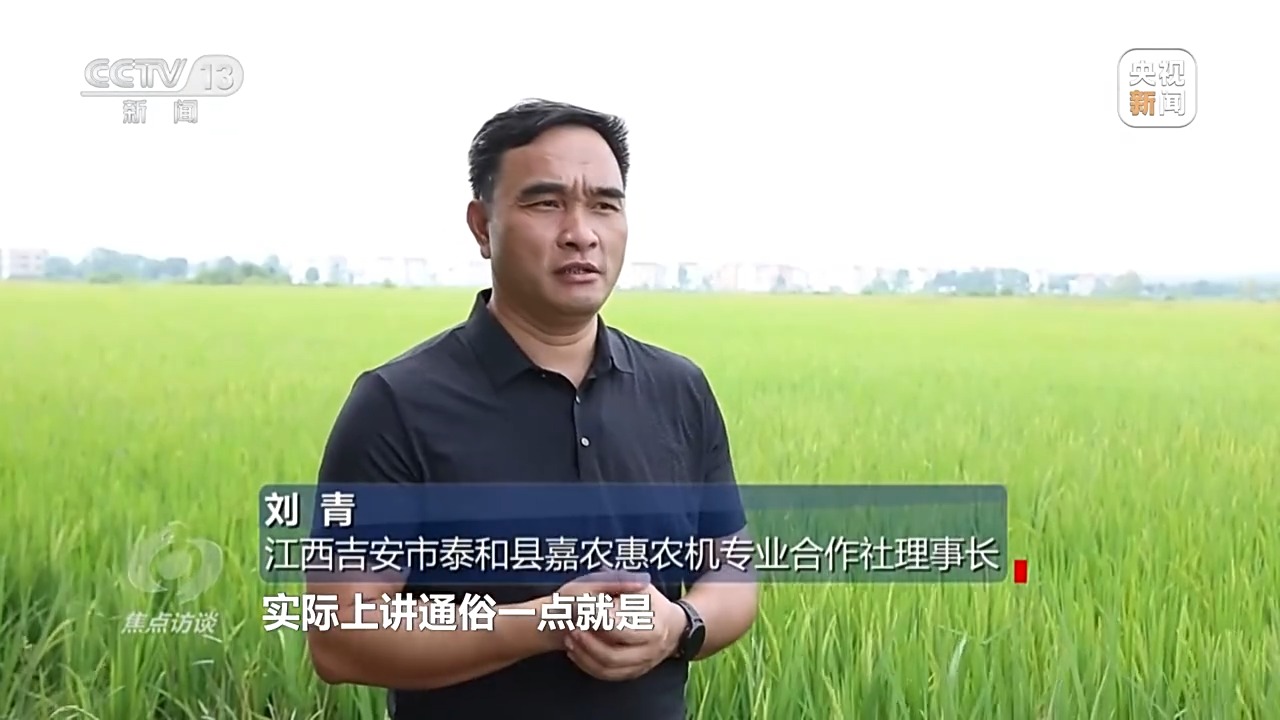江西吉安市泰和縣嘉農(nóng)惠農(nóng)機(jī)專業(yè)合作社理事長(zhǎng) 劉青:實(shí)際上我們就是農(nóng)民的“田間保姆”,農(nóng)民雇傭我們,我們做他的保姆,為他田里面的稻子種植整個(gè)過(guò)程,做一個(gè)保姆式服務(wù)。