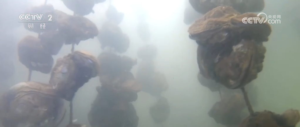 通過水下鏡頭可以看到,蠔苗被放下去的時(shí)候就固定在了水泥石餅上,每串石餅大約固著有40個(gè)。養(yǎng)殖戶們說,這種吊樣的方式不僅讓生蠔長得好,還能方便捕撈。像1.6畝大小的蠔排可以吊養(yǎng)蠔苗大概1.2萬串,整個(gè)基地蠔苗的年產(chǎn)量達(dá)13.45萬噸。