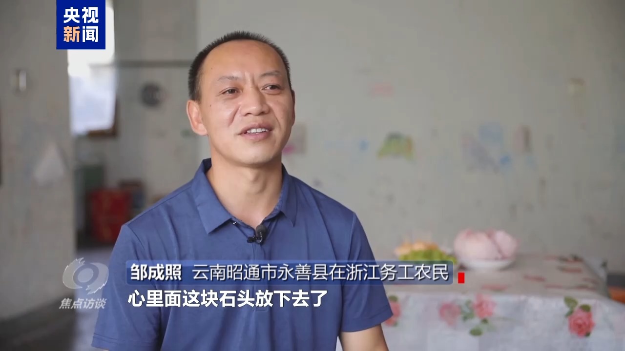 云南昭通市永善縣在浙江務工農(nóng)民 鄒成照:心里面這塊石頭放下去了,我的第一個愿望就是希望我的孩子跟城里的孩子一樣,能夠享受到城市之間這種便利、發(fā)展。