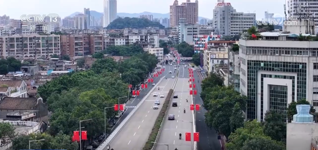 廣東:懸掛國旗迎國慶 街頭飄起“中國紅”