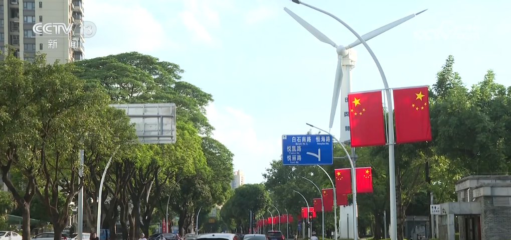 在廣東深圳,公園、廣場、街道上,處處可以看到五星紅旗迎風(fēng)飄揚。紅旗與藍天、綠樹、高樓交相輝映,為城市增添了濃濃的節(jié)日氛圍。