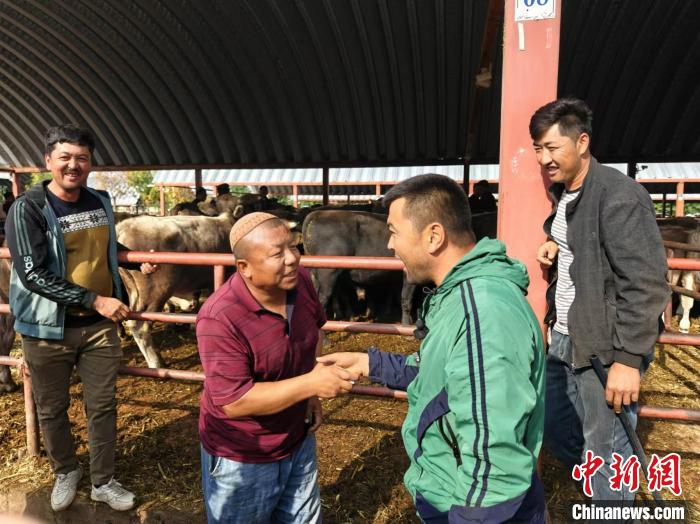 依力夏提·阿不都熱依木其實(shí)很少有擔(dān)心“牛賣不掉”的時(shí)候,入行已近20年的他懂牛,也懂行情。這個(gè)月還沒過完,他已經(jīng)賣了五六百頭牛。采訪當(dāng)天,他從新源、尼勒克和昭蘇等地拉來80頭牛,并信心十足地表示當(dāng)天能全部賣完。他說,生意好的時(shí)候,一年下來能掙三四十萬元。
