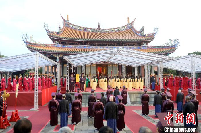 臺(tái)南孔廟創(chuàng)建于300多年前,是全臺(tái)第一座孔廟。當(dāng)天上午,臺(tái)南祭孔依循古禮舉行儀式,學(xué)生在大成殿前跳六佾舞,另有書院負(fù)責(zé)演奏祭孔音樂(lè),全程約1小時(shí)。
