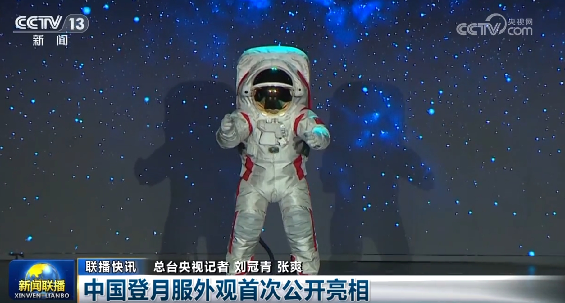 9月28日,中國載人航天工程辦公室面向社會發(fā)布登月服征名活動,并首次公開中國登月服外觀。此次亮相的中國登月服外觀,上身裝飾帶設(shè)計融合了飛天飄帶的優(yōu)雅飄逸和傳統(tǒng)鎧甲的硬朗厚重,體現(xiàn)了剛?cè)岵?jì)的中國哲學(xué);腿部裝飾帶設(shè)計成火箭升空尾焰造型,與上身呼應(yīng),形成一飛沖天的勢態(tài),體現(xiàn)了中國騰飛的設(shè)計理念。