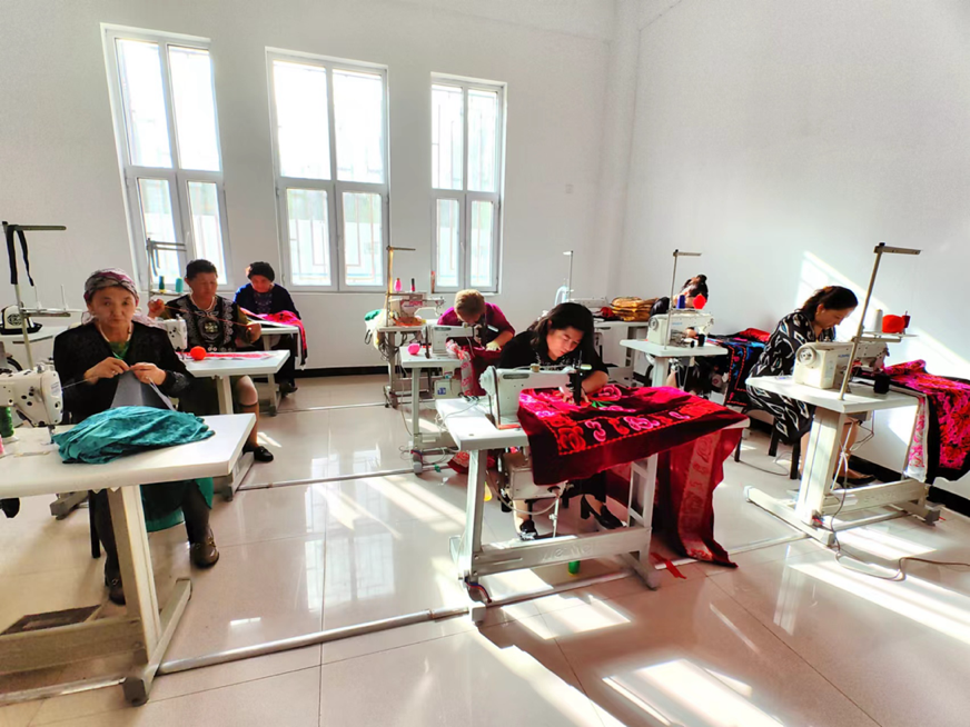 托云牧場積極鞏固政策支持,集中力量打造項目驅動,有效推進地方產(chǎn)業(yè)集群的全面發(fā)展,實現(xiàn)經(jīng)營集約化與產(chǎn)業(yè)高效整合。2015年,由牧場“刺繡巧匠”吐孔·沙熱牽頭并成功注冊了“托云牧場帕米爾刺繡”合作社。到了2019年,牧場成功申請到160萬元援疆資金,用于建設新的手工刺繡產(chǎn)品生產(chǎn)基地。在吐孔·沙熱的帶動下,合作社目前擁有60名成員,其中43名技藝嫻熟的繡工,年總收入攀升至三十萬。該合作社通過直銷、與克州百來思服裝店的業(yè)務合作,以及接受附近學校的校服訂單等多種渠道,將其生產(chǎn)的床品、家居布藝、女性服裝及校服推向阿圖什市、烏恰縣等地區(qū)市場。