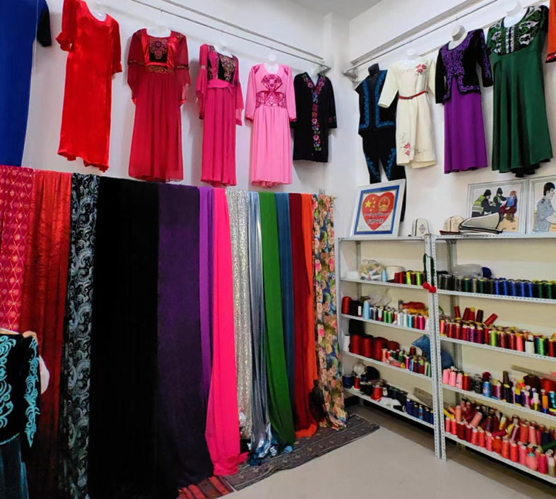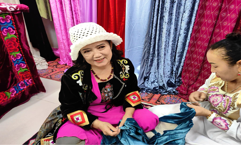 將傳統(tǒng)手工藝轉化為商品,市場化推進,托云牧場不懈探索手工藝與鄉(xiāng)村振興的新路徑,助力當?shù)厥止に嚾藢ⅰ爸讣饧妓嚒鞭D化為“指尖經(jīng)濟”。維吾爾族姑娘努力曼古麗·買加買提分享道:“在刺繡合作社,我與柯爾克孜族的姐妹互相切磋學習,通過刺繡工藝的差異,我們發(fā)現(xiàn)了各民族刺繡的獨特風格,同時發(fā)現(xiàn)很多共通的地方。在彼此互相了解學習的過程中,感受到了各民族文化的相互交融與共同進步?!?/p>