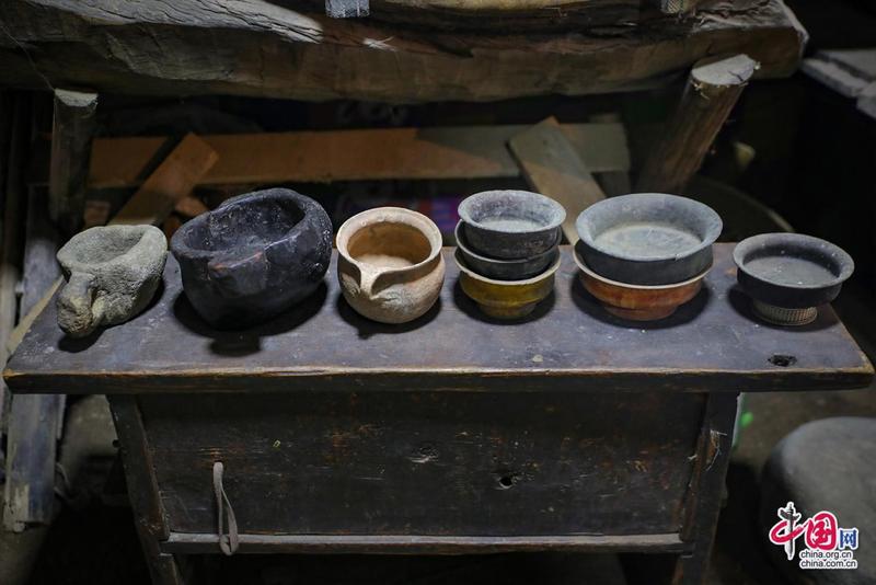 “記憶里的珍珠”紅色收藏紀念館內景·藏式碗具。中國網(wǎng)記者鄭偉攝