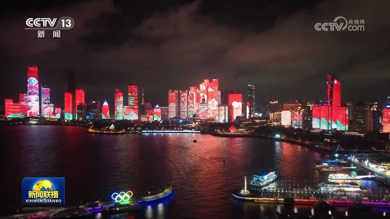 璀璨絢麗的燈光,點亮城市夜空。在山東青島、湖北十堰、河北石家莊、四川宜賓等地,以“慶祝中華人民共和國成立75周年”為主題的燈光秀,營造出濃厚節(jié)日氛圍。