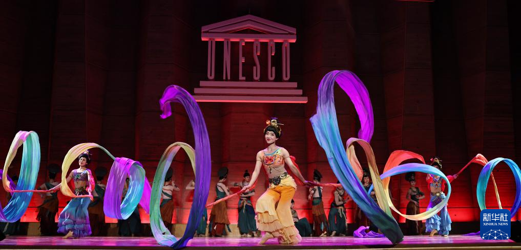 9月24日,在位于法國巴黎的聯(lián)合國教科文組織總部,中國殘疾人藝術(shù)團的演員在國慶75周年招待會上表演。新華社記者 高靜 攝
