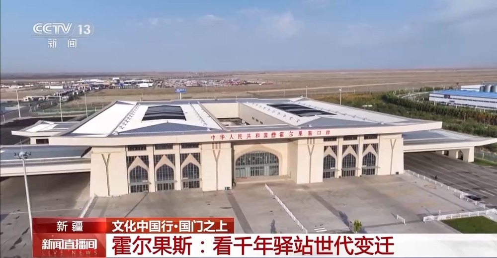 總臺央視記者 王莉:這里是位于新疆伊犁哈薩克自治州的霍爾果斯公路口岸,這座巍峨雄偉的建筑就是霍爾果斯第六代國門,這里與哈薩克斯坦隔河相望,是中國向西開放的重要窗口和連接亞歐大陸的“黃金口岸”。千年以前,霍爾果斯就是古絲綢之路上的重要驛站,一百多年前,霍爾果斯公路口岸正式通關,從20世紀50年代的第一代國門,到如今的第六代國門,國門的變遷,見證著霍爾果斯的這座邊境城市的蓬勃發(fā)展。