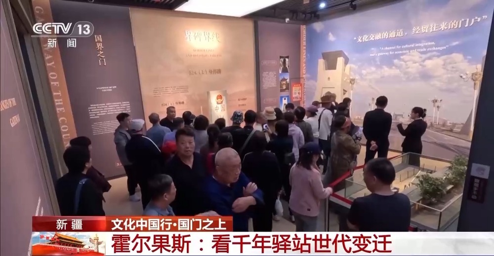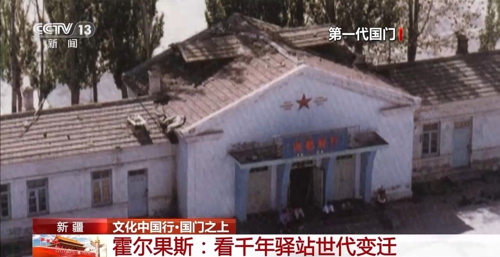 總臺央視記者 王莉:從霍爾果斯第六代國門向北,就來到了第五代國門。如今第五代國門雖然已經不再承擔國門的功能,但是當地把它改建成了霍爾果斯國門文化展示館,通過文字、圖片、視頻向大家講述著國門的變遷,口岸的歷史。