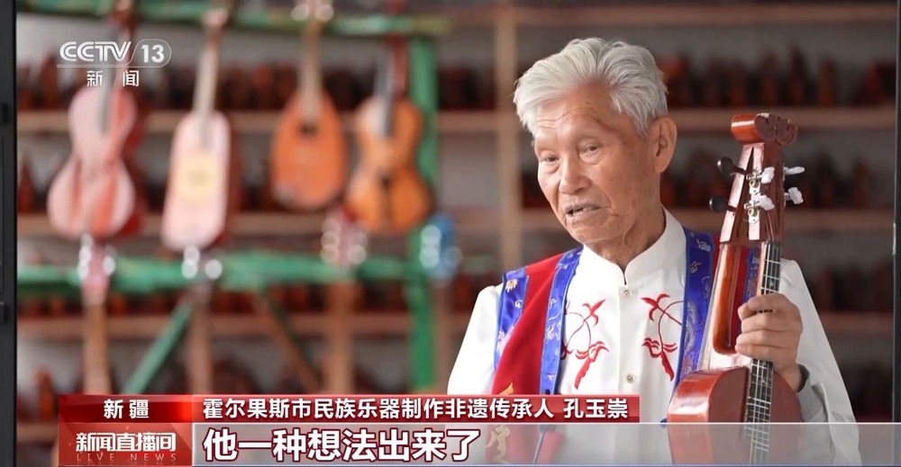 霍爾果斯市民族樂器制作非遺傳承人 孔玉崇:我現在的想法是,把這個樂器的質量要提升,提升到一個很高的層次上。一定要走出去,我們的聲音傳到全世界,那是絕美的聲音。