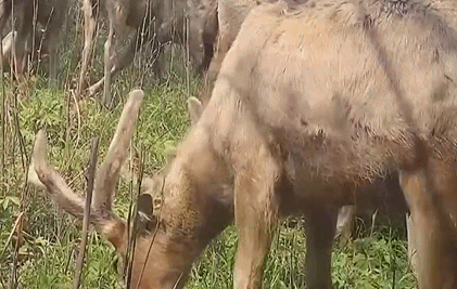 湖北石首麋鹿國家級自然保護(hù)區(qū)內(nèi),麋鹿們常常結(jié)成大群活動,而每每一見到美食,它們就抵不住誘惑,立馬沉浸式地埋頭享用起來。