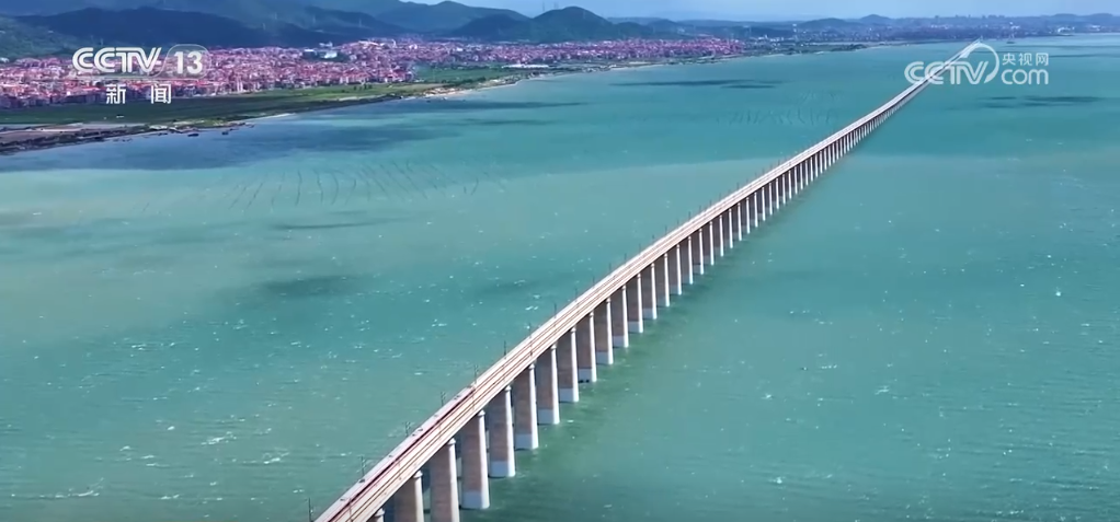 這是我國首條設(shè)計時速350公里的跨海高鐵——福廈高鐵湄洲灣跨海大橋。碧波之上,大橋氣勢恢宏,連接兩岸。在跨海大橋上行車,受海上風力影響很大,通過這樣的路段通常需要減速慢行。但福廈高鐵實現(xiàn)了“跨海過橋不減速”,在不設(shè)風屏障等防風措施下,列車可在8級大風下以時速350公里速度行駛。國慶假期,福廈高鐵加開195趟列車,滿足旅客出行需求。