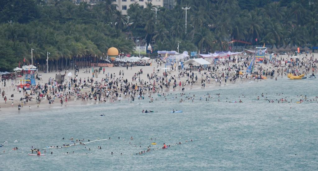 10月4日,三亞市大東海旅游區(qū)游人如織。新華社記者趙穎全 攝