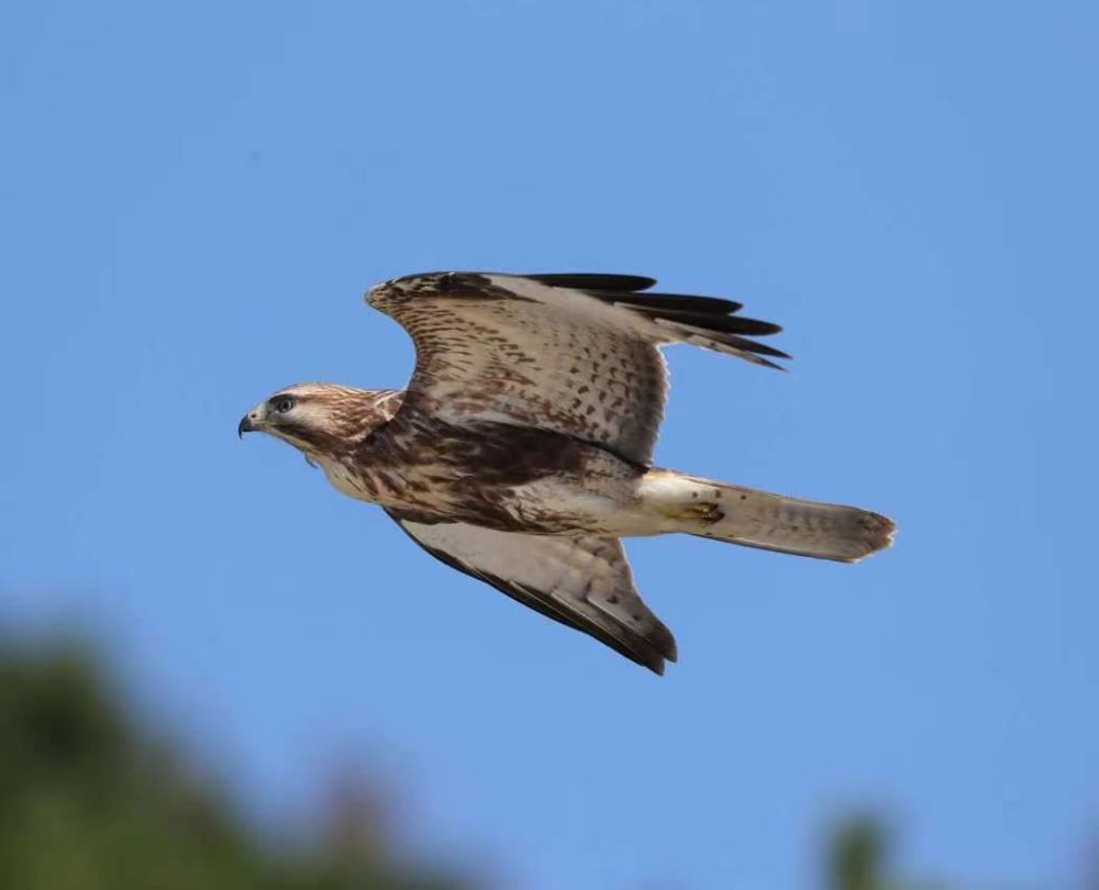 9月23日,一只普通鵟飛越老鐵山。(遼寧蛇島老鐵山國家級(jí)自然保護(hù)區(qū)供圖)