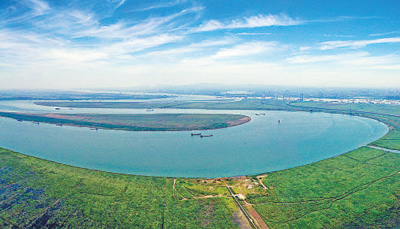 長(zhǎng)江湖南岳陽(yáng)君山區(qū)段景色壯美。當(dāng)?shù)亟y(tǒng)籌山水林田湖草沙綜合治理,扎實(shí)推進(jìn)長(zhǎng)江經(jīng)濟(jì)帶綠色發(fā)展示范區(qū)建設(shè)。李 健攝(人民視覺)