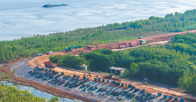長(zhǎng)江安徽蕪湖段整治工程施工現(xiàn)場(chǎng)。該工程建成后可進(jìn)一步提升防洪能力,改善生態(tài)環(huán)境。肖本祥攝(人民視覺)