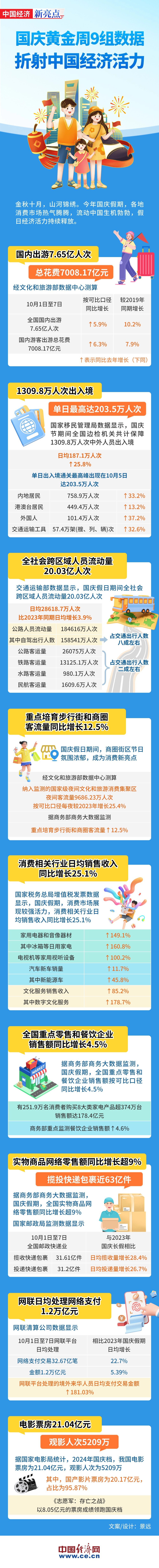 資料來源:經(jīng)濟(jì)日?qǐng)?bào)、新華社、央視新聞、文化和旅游部、國家移民管理局、交通運(yùn)輸部、國家稅務(wù)總局、國家郵政局等。