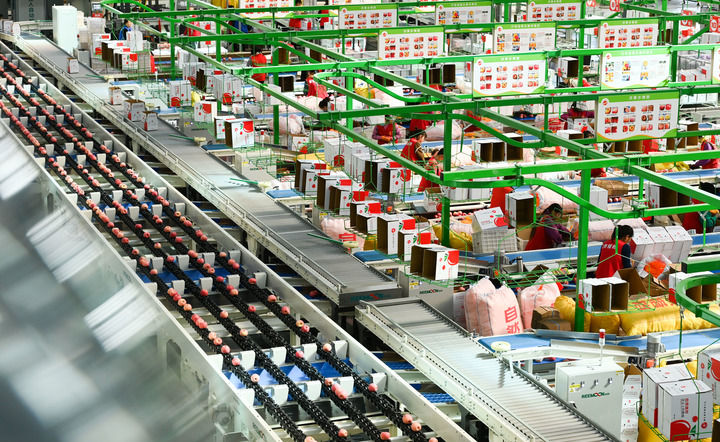 工作人員在延安市洛川縣一家果業(yè)企業(yè)打包蘋果(2023年10月20日攝)。新華社記者 鄒競一 攝