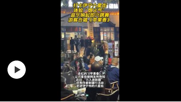 六星街的“蘋果香”餐廳更是成為眾多游客的打卡點(diǎn),他們?cè)谄穱L新疆美食的同時(shí),也跟著齊聲合唱被稱為“六星街成名曲”的《蘋果香》。