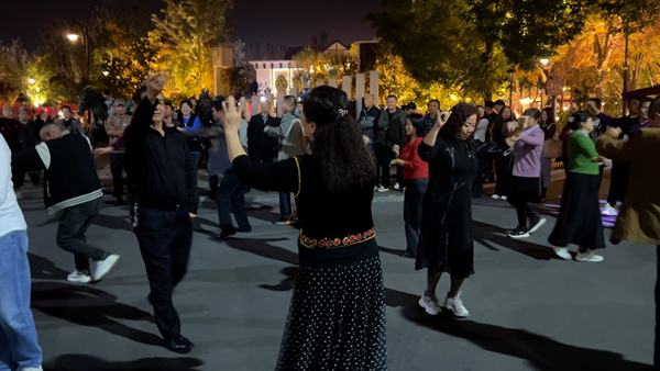 近百年的文化沉淀塑造了六星街獨(dú)特的歷史人文價(jià)值,記者在現(xiàn)場(chǎng)感受到濃濃“疆式煙火氣”,整個(gè)街區(qū)隨處可見音樂聲,游客和當(dāng)?shù)孛癖妵μ鹞璧福瓦B賣商品的小販都在跟著節(jié)拍一起搖擺。