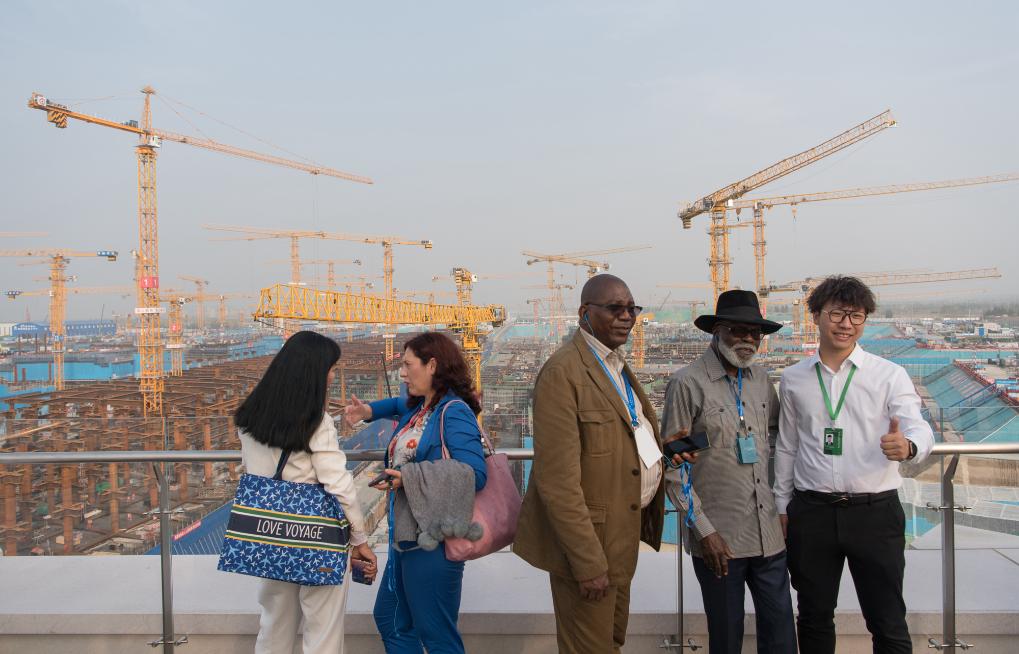 10月12日,外國友人參訪雄安新區(qū)啟動區(qū)綜合服務(wù)中心。新華社發(fā)(劉尊拴 攝)