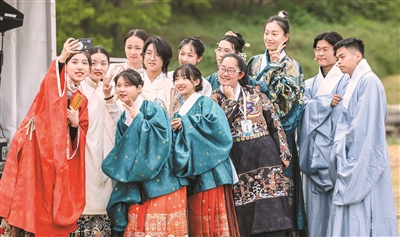 “穿著傳統(tǒng)服飾,常常伴隨著對古代禮儀和文化習(xí)俗的學(xué)習(xí)和效仿,如禮茶、撫琴等,年輕人得以更深入地了解和體驗中華傳統(tǒng)文化的豐富內(nèi)涵,接受傳統(tǒng)文化的熏陶?!表n丹說。