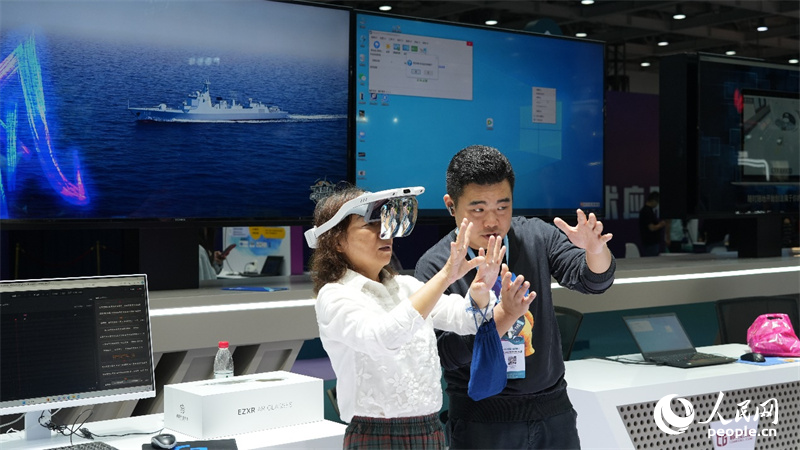 觀眾在新媒體技術(shù)展進(jìn)行AR互動體驗。人民網(wǎng)記者 吳茜薇攝