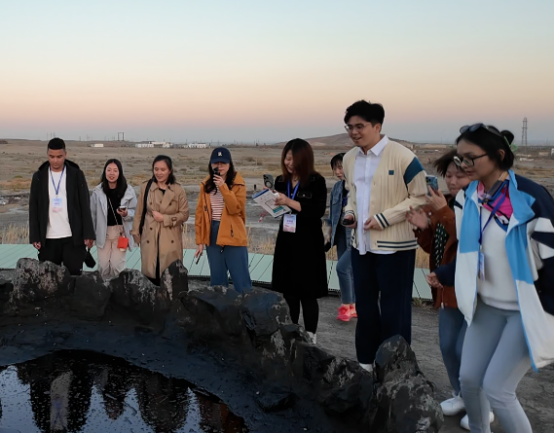 在黑油山最著名的景點——“跳跳泉油池”,黑油山景區(qū)講解員麥爾哈巴·肉扎洪帶領訪問團代表們利用壓力傳導作用,在它的周圍邊喊邊跳,眼見著它冒的泡泡越來越多,讓大家興奮不已。麥爾哈巴·肉扎洪說:“經過三代人的努力,克拉瑪依變成了現在這樣宜居宜業(yè)宜游的現代化高品質城市,希望可以把克拉瑪依艱苦創(chuàng)業(yè)的精神傳達給大家,也可以把這種活力傳達給大家?!?/p>