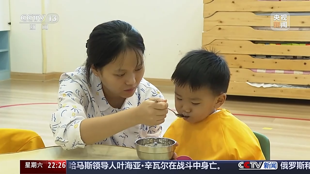 隨著晨檢的結(jié)束,孩子們便可以到食堂享用早餐。每周的食譜都會根據(jù)孩子生長發(fā)育的需求進行調(diào)整。除了入園體檢,以及由營養(yǎng)師制定的食譜外,永川區(qū)婦幼保健院托育中心與其他傳統(tǒng)托育中心不同的是,配有醫(yī)師、推拿師、營養(yǎng)師、治療師、評估師等8師共育服務團隊,同時還定期為孩子們進行生長監(jiān)測以及發(fā)育評估、五官保健等活動。