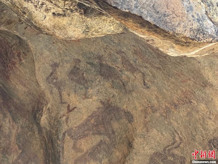 富含鐵礦石和動物膠質(zhì)的顏料將這一幕拓印在避風(fēng)的巨石上,距離胡安什別克家40多公里的汗德尕特蒙古族鄉(xiāng)敦德布拉克河谷,走一段路,就能相遇這幅萬年前的人類滑雪活動的“活化石”。